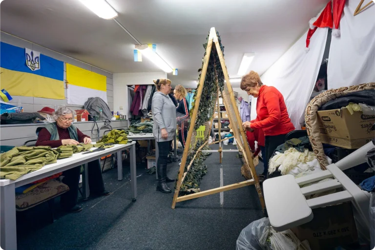 W centrum Warszawy tkają siatki dla Ukrainy. „Ręce czasami bolą, ale pomagamy swoim”